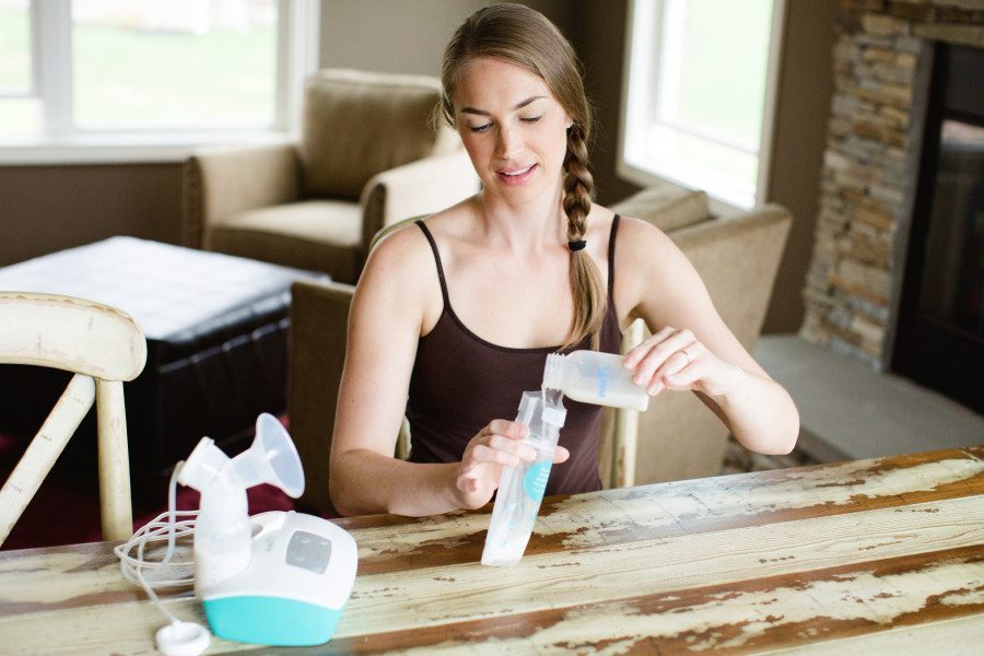 Imagine que você precisa deixar 3 porções de 120 mL de leite por dia, 5 dias por semana, ou seja, um total de 15 porções por semana, 1800 mL. No melhor dos casos você ordenha uma meia de 70 mL três vezes por dia, antes de voltar trabalhar (o que só vai acontecer depois de muita prática), e durante o serviço (no melhor dos casos) consegue manter duas ordenhas de 80 mL para ir repondo o estoque. Assim, você irá demorar 8 dias de ordenhas regulares para estocar o leite que seu bebê irá consumir na sua ausência, durante a semana enquanto ainda está em casa, e precisará de 2 dias e meio de ordenhas no serviço para repor as porções que seu bebê consome num único dia. Se na sua ordenha em casa consegue menos, ou se no serviço não tem como ordenhar e estocar, o tempo pode ser bem maior.