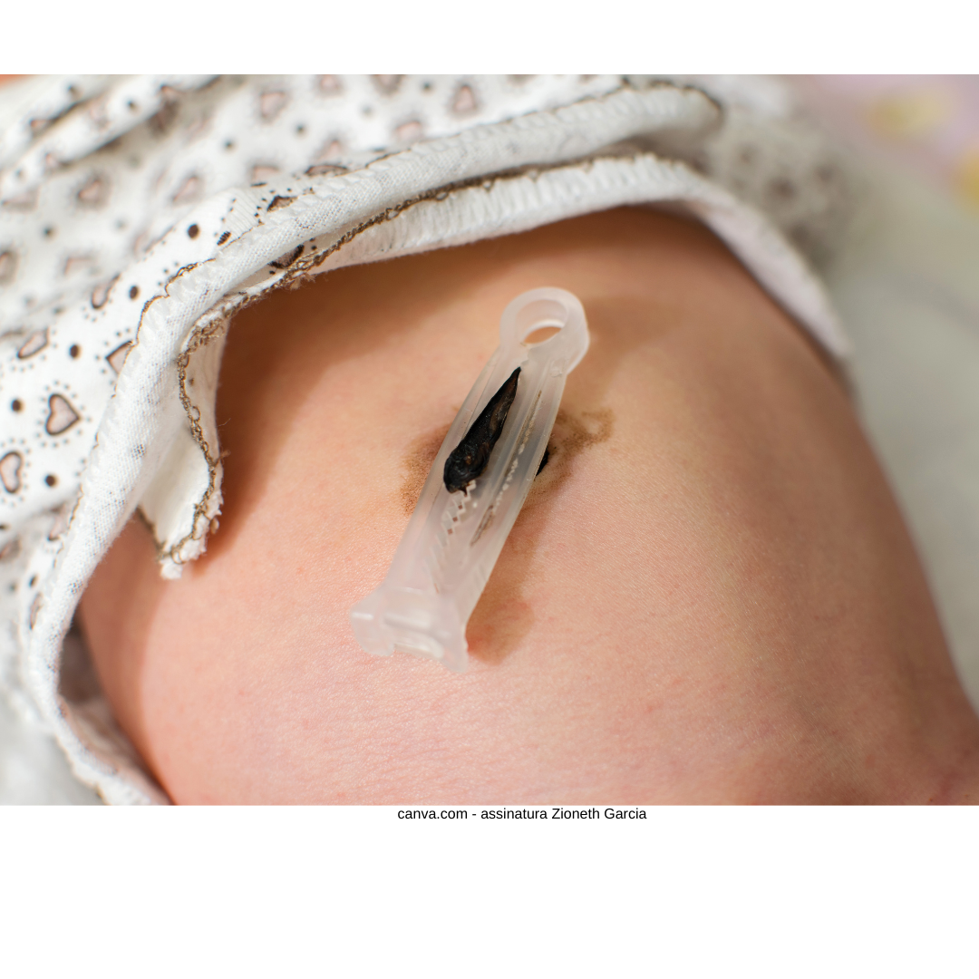 Não precisa acelerar o processo de desprendimento do coto, não o puxe, não use faixas, nem moedas ou botões, e não coloque nenhum curativo fechado. Qualquer alteração na coloração, aspecto ou cheiro, procure o pediatra imediatamente.