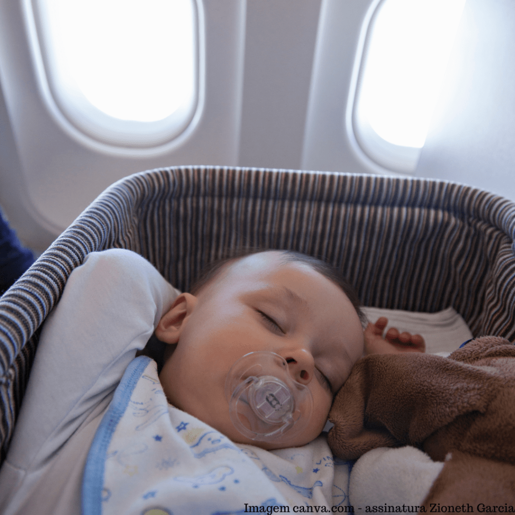 No avião a maioria dormem uma beleza, por causa do movimento, o som monótono e o friozinho, mas se acontecer choro de cansaço, então tentem fazer o seu roteiro de sono (musiquinha de ninar, naninha), para colocar para dormir, mesmo que precise embalar no meio de corredor, não tenha vergonha de se movimentar para acalmar seu bebê.